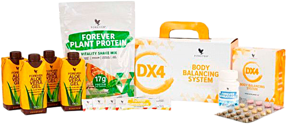 Započnite svoje velnes putovanje sa Foreverovim DX4, četvorodnevnim programom koji će vam pomoći da osvežite telo i um preko snažne kombinacije kratkotrajnog posta, vođenim unosom hrane i šest inovativnih proizvoda dostupnih samo unutar paketa Forever DX4, uz pomoć klasičnog Forever Aloe Vera Gela, kao podrške organizmu u vidu suplemenata tokom restriktivnog kalorijskog unosa hrane radi postizanja životnih ciljeva.